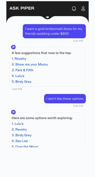 It’s about smarter, not harder. From the simplest everyday items to the most indulgent luxuries, Piper is here to guide you to what you'll love, faster and easier than ever before.